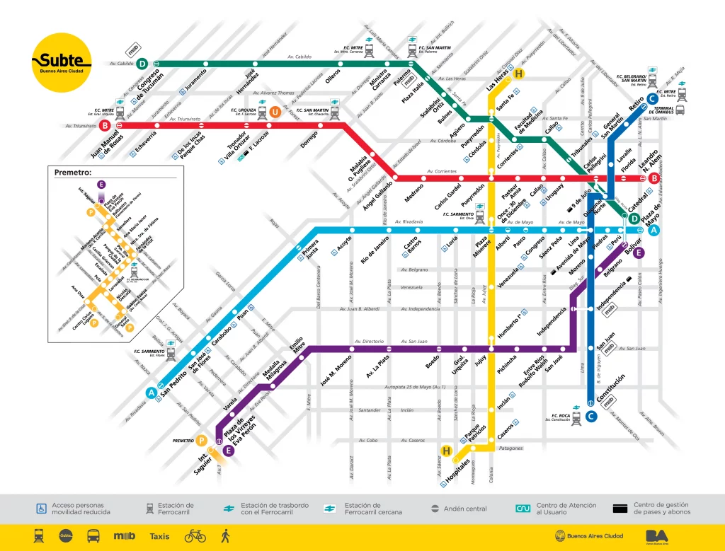 Las líneas de subte son 6. Cinco de ellas recorren la ciudad de Este a Oeste por debajo de las avenidas principales y solo una de ellas lo hace de Norte a Sur (la H). Esta es tu opción ideal si lo que quieres es llegar rápido a destino. Eso sí, trata de evitarlo en las horas pico entre las 8 o 9 de la mañana y las 18 y 19.
